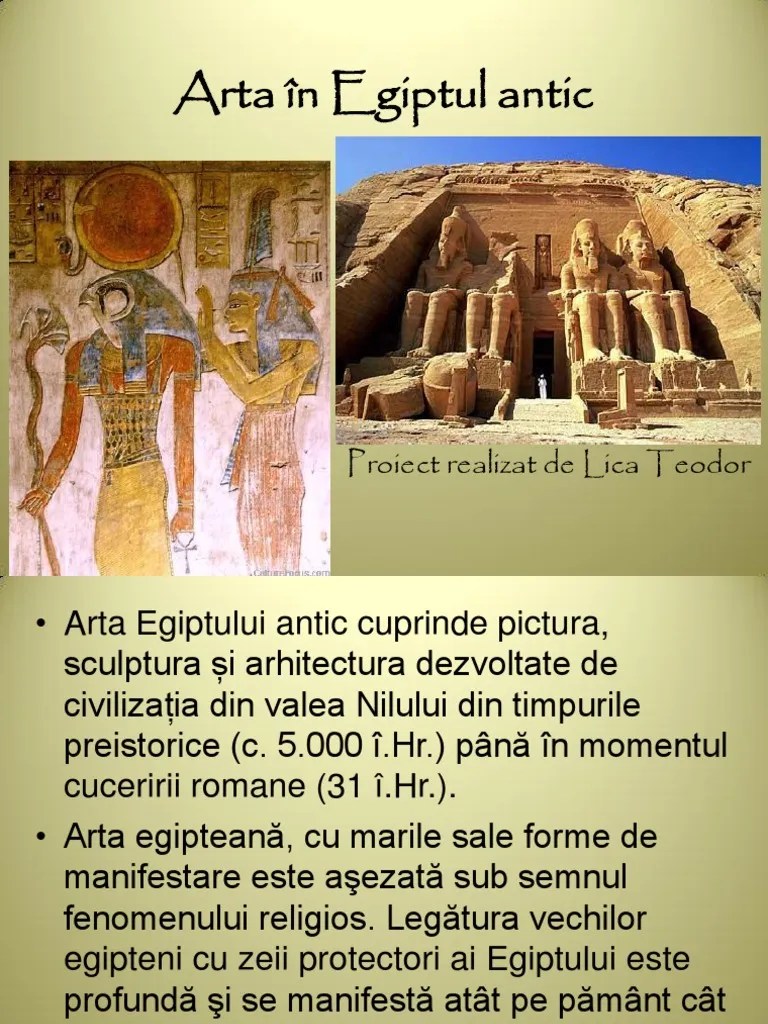 Istoria egiptului antic constituie o atracţie permanentă pentru contemporani. Prezentarea pe scurt a egiptului antic faraoni piramide etc. "orice religie nu este altceva decit oglindirea fantastică in mințile oamenilor a fortelor exteriuare care domina viața lor de toate zilele.