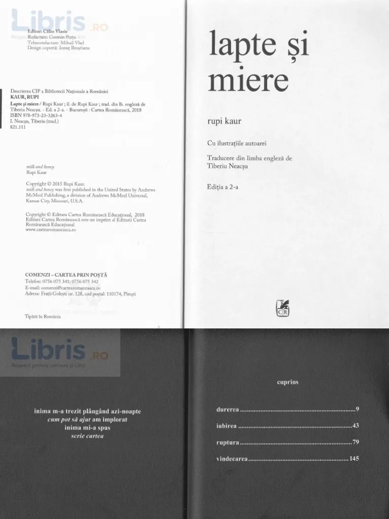 Tanara in varsta de 27 de ani a trait o mare parte din viata in canada, unde a si studiat, iar in anul 2014 a publicat prima sa carte intitulata milk & honey.a vandut peste 2.5 milioane de exemplare in intreaga lume, iar la un an de la lansare a ajuns pe lista new. Dec 06, 2019 · informatii generale. Biblioteci din tara si strainatate biblioteci judetene ministerul educației naționale uniunea scriitorilor din românia institutul cultural român protectia consumatorilor a.n.p.c. Acesta e sângele sudoarea lacrimile. Lapte qi miere era un trandafir in mdinile celor care nu aveau nici o intentie de a o pistra 18 rupi kaur de fiecare datd c6nd A short summary of this paper. 35 full pdfs related to this paper.. Biblioteci din tara si strainatate biblioteci judetene ministerul educației naționale uniunea scriitorilor din românia institutul cultural român protectia consumatorilor a.n.p.c.