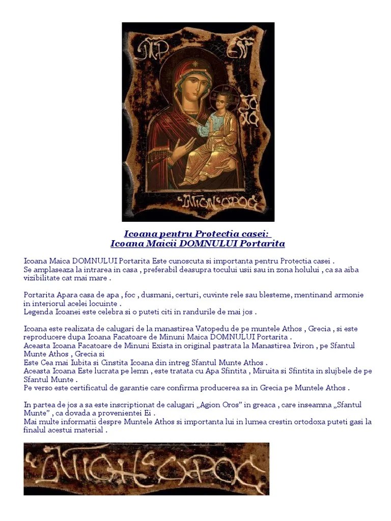 Potrivit traditiei athonite, aceasta icoana a venit singura, pe …. Portarita de la marea lavra nu este tot atat de.